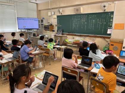 9月2日(月)3時間目、2年2組は国語の学習を終えて、パソコンの中からいらなくなった画像を消していました。