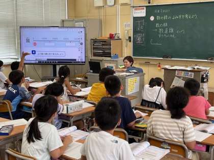9月3日(火)2時間目、3年1組は算数で数直線の読み方を考えていました。