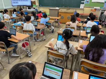9月3日(火)2時間目、1年2組はパソコンで「心の天気」を入力していました。