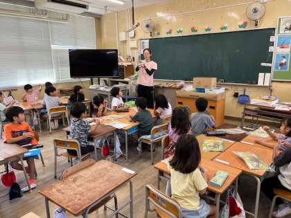 9月4日(水)2時間目、1年2組は図工で、かみざらコロコロを作っていました