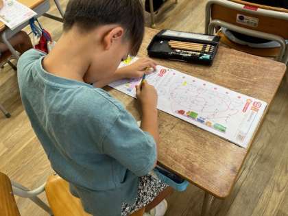 9月13日(金)1時間目、1年1組は国語で「かいがら」の漢字の練習をしていました。