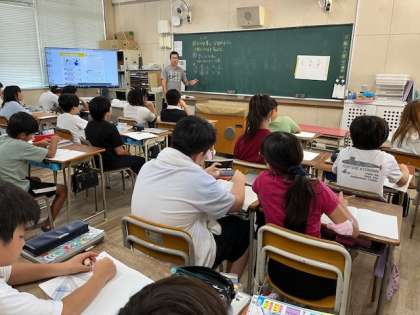 9月13日(金)3時間目、5年2組は算数で大きさが等しく、分母が小さい分数の作り方を考えていました。