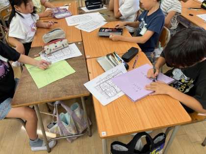 9月18日(水)1時間目、4年は総合で3つの教室に分かれて、グループで計画を立てていました。