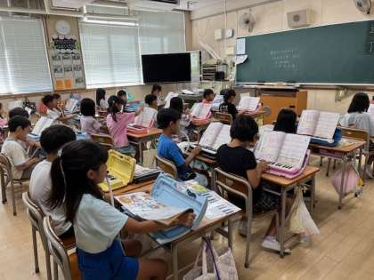 9月18日(水)2時間目、2年1組は音楽で「虫の声」等を鍵盤ハーモニカで練習していました。
