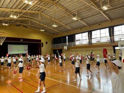 9月19日(木)2時間目、5年はエイサーの練習をしていました。