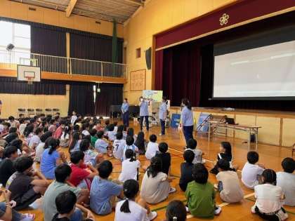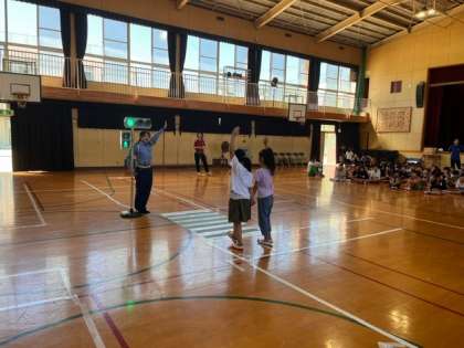 9月20日(金)2,3時間目、全学年で交通安全学習をしました。1・2年生は、正しい歩行の仕方について、3〜6年生は、正しい自転車の乗り方について学習しました。子どもたちは、警察の方の話をしっかりと聞いていました。今日の学習を生かして、これからも安全に過ごしてほしいものです。