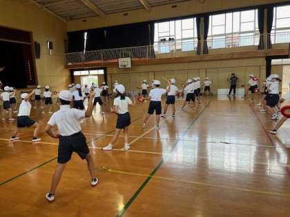 9月24日(火)5時間目、5年はエイサーの練習をしていました。