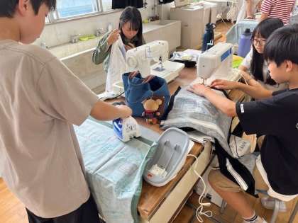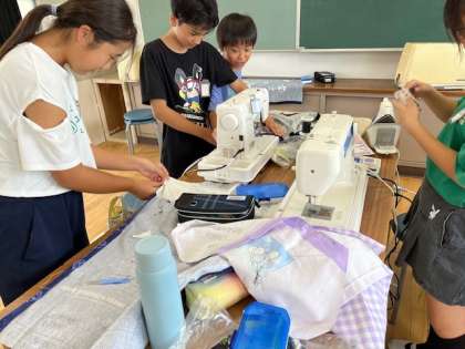 9月24日(火)5時間目、6年2組は家庭科でエプロン作りをしていました。