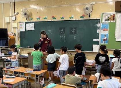 9月25日(水)1時間目、1年2組は漢字を練習し先生にみてもらっていました。