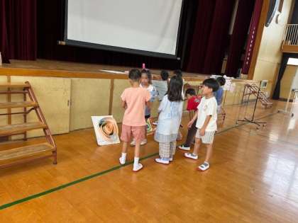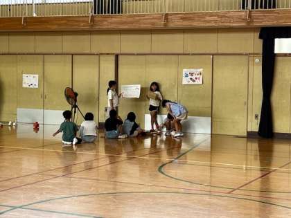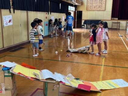 9月25日(水)5時間目、2年は体育館でおもちゃランドのリハーサルをしていました。1年生役と2年生に分かれて楽しんでいました。