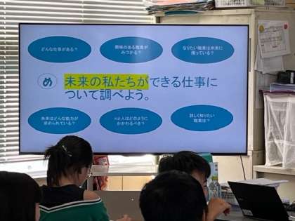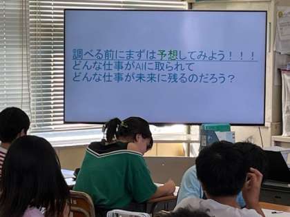 9月26日(木)1時間目、6年2組は総合で自分たちの未来について考えていました。どんな仕事がAIに取られていくのかを考えていました。