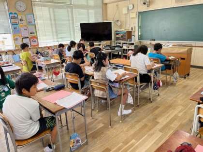 9月26日(木)1時間目、5年1組は総合で粉浜の町や粉浜町学校のことを調べていました。