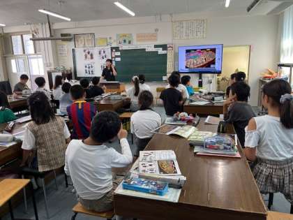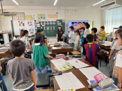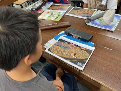 9月26日(木)2時間目、5年1組は音楽で鑑賞の学習をしていました。音や雰囲気がどのように変わったかを聞きながら、旋律をパやラで歌って旋律の移り変わりの音色に気をつけて聞いていました。