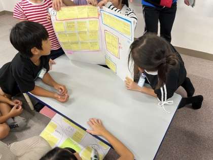 9月27日(金)6時間目、5年は粉浜の町ことや粉浜小学校のことを調べていますが、1組と2組で調べたことを交流しました。「できごと」や「もの」は多いですが「人とのかかわり」が少ないことに気付き、次の課題が見えたようです。