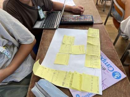 10月1日(火)1時間目、4年は総合で防災についてグループごとに調べていました。グループによってはふせんで考えを整理しているところもありました。