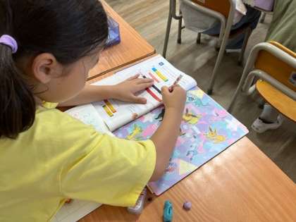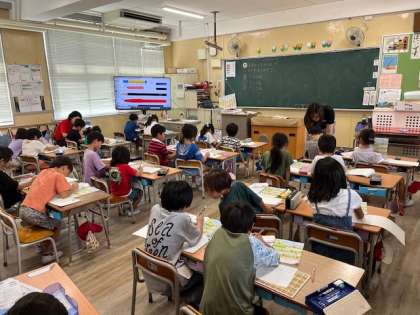 10月1日(火)3時間目、1年1組は算数で長さを学習していました。