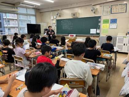 10月3日(木)1時間目、4年2組は理科で「とじこめた空気や水」について学習していました。