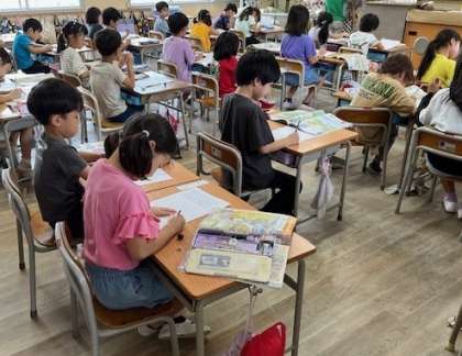 10月7日(月)2時間目、1年1組は生活科で「秋さがし」のことを絵と文で書いていました。