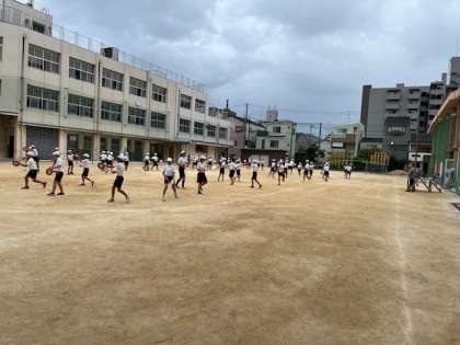 10月7日(月)6時間目、5年は運動場で体育をしていました。エイサーの練習をしていましたが、最後までできたのでしょうか・・・。てるてる坊主は思いをかなえてくれたのでしょうか?
