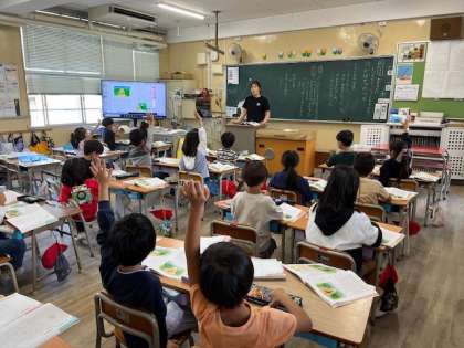 10月10日(木)1年1組は道徳で「かぼちゃのつる」を学習していました。