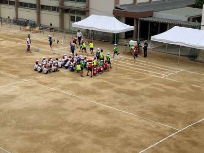 10月15日(火)1時間目、5年は体育でリレーの練習をしていました。