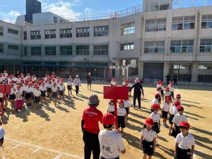 10月17日(木)1時間目、運動会の全体練習で閉会式の練習をしました。