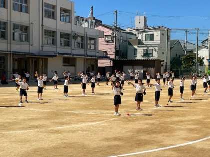10月17日(木)2時間目、1年と2年がお互いに演技を見せあいっこをしました。観客がいるだけで緊張感が違いますね。