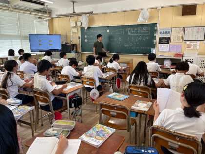 10月17日(木)3時間目、6年1組は算数で小さい整数の比に表す方法を考えていました。