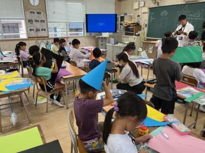 10月18日(金)1時間目、2年2組は図工ですてきなぼうしを作っていました。