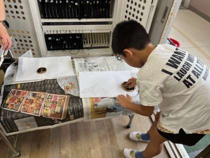 10月18日(金)1時間目、3年2組は図工で紙版画を刷っていました。