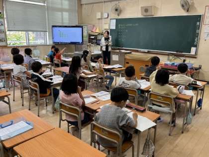 10月22日(火)1時間目、2年1組は算数で4の段の九九の作り方を考えていました。