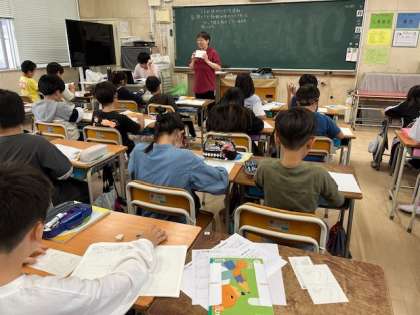 10月22日(火)5時間目、4年2組は理科で「人の体のつくりと運動」を学習していました。