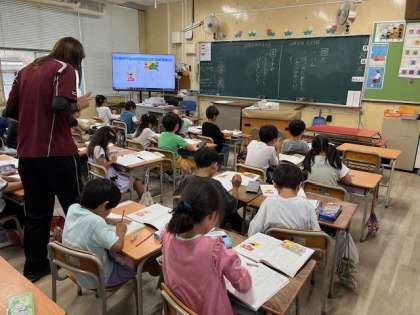 10月22日(火)5時間目、1年2組は「サラダで げんき」を学習していました。