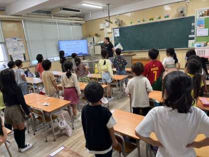 10月22日(火)5時間目、1年1組は音楽で歌を歌っていました。フリをつけて楽しそうに歌っていました。