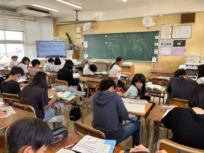 10月23日(水)1時間目、6年2組は算数で比を使って全体の量から部分の量の求め方を考えていました。