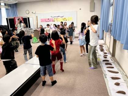 2年はふれあいルームに移動して「おいもパーティー」を始めました。おいもダンスで一気にもりあがりました。