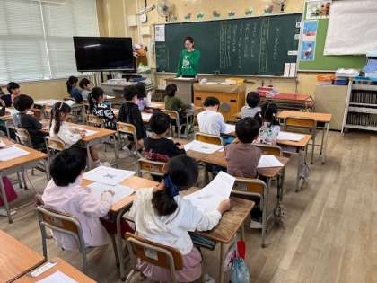 11月5日(火)1時間目、1年2組は国語で「はなしをつなぐことば」を学習し、はなしをつなぐための聞き方や話し方も考えていました。