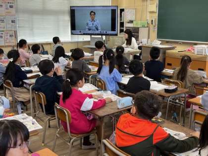 11月5日(火)1時間目、3年2組は社会科で119番への電話をかけると、どのように消防車が出動するのかについて動画を見て学んでいました。