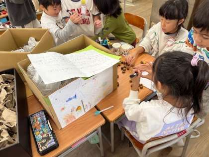 11月11日(月)3時間目、1年1組は生活科でおもちゃランドの準備をしていました。看板を作ったり、ルール説明を書いたりしていました。