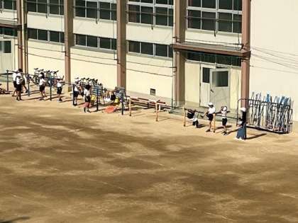 11月11日(月)3時間目、3年2組は体育で鉄棒の練習をしていました。