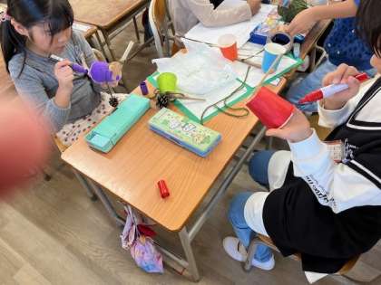 11月12日(火)3時間目、1年2組は、生活科で「おもちゃランド」の準備をしていました。
