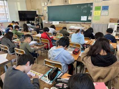 11月14日(木)1時間目、4年2組は国語で漢字の練習をしていました。