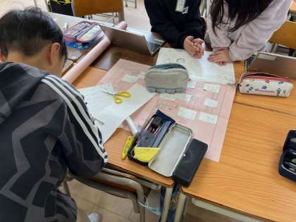 11月18日(月)3時間目、4年は総合の時間に3つに分かれて、調べたことの発表の準備をしていました。