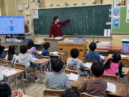 11月19日(火)1時間目、1年2組は「まとめてよぶことば」を学習していました。子どもたちからたくさん車や船の種類が出されました。