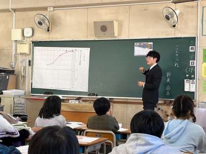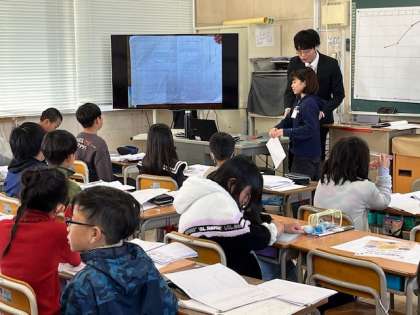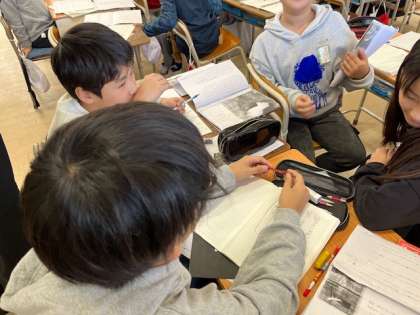 11月20日(水)2時間目、4年2組は国語で「ごんぎつね」を学習していました。兵十と加助の話を聞いたごんの気持ちを考えていました。感情曲線を引いてその理由を発表していました。