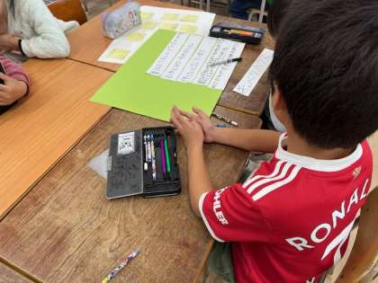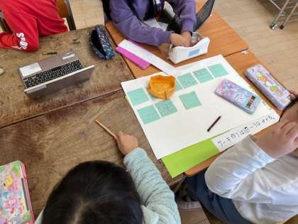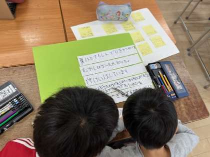 11月20日(水)4時間目、2年2組は生活科で、インタビューに行ったお店の人の「ステキ」を伝えようと紙に書いてわかりやすくしようとしていました。どんな「ステキ」があったのか、楽しみです。