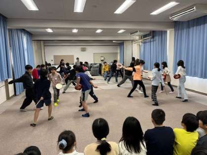 11月21日(木)5年は1時半から住之江支援学校との交流会がありました。粉浜地域に住んでいて住之江支援学校に通っている5年生が粉浜小学校に来てくれて交流をしました。お互いの運動会で踊った演技を見せあいました。とても盛り上がりました。