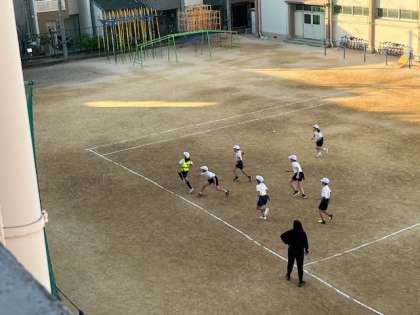 11月21日(木)6時間目、5年1組はタグラグビーをしていました。