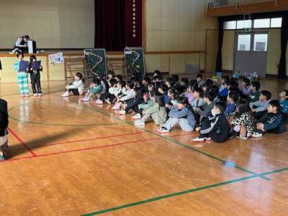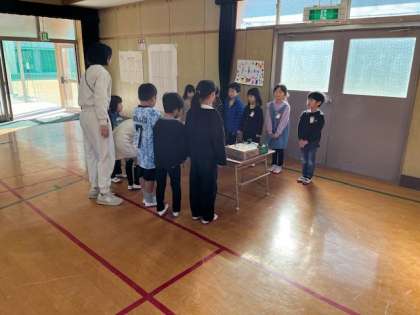 12月2日(月)2時間目、1年は明日のおもちゃランドに向けて、全体的な流れの練習をしていました。1組と2組で交代してお店と遊ぶ人に分かれていました。
