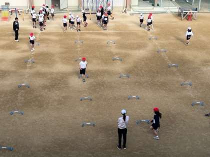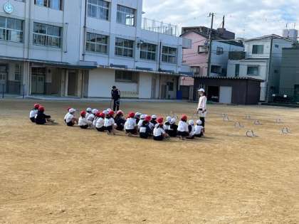 12月16日(月)3時間目、3年2組は体育でハードル走につながる障害物走の練習をしていました。